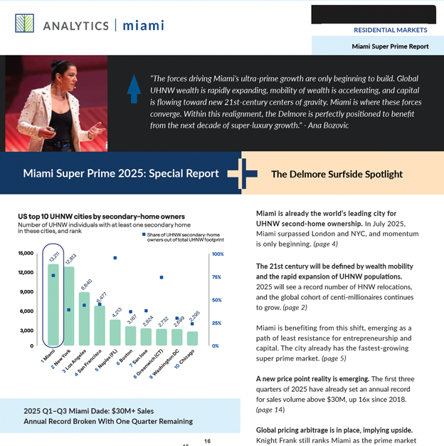 Powered by Analytics Miami and founded by Ana Bozovic, the platform delivers exclusive, data-driven intelligence on the market’s most compelling opportunities, precisely as Miami cements its place as a global capital of wealth, innovation, and lifestyle.